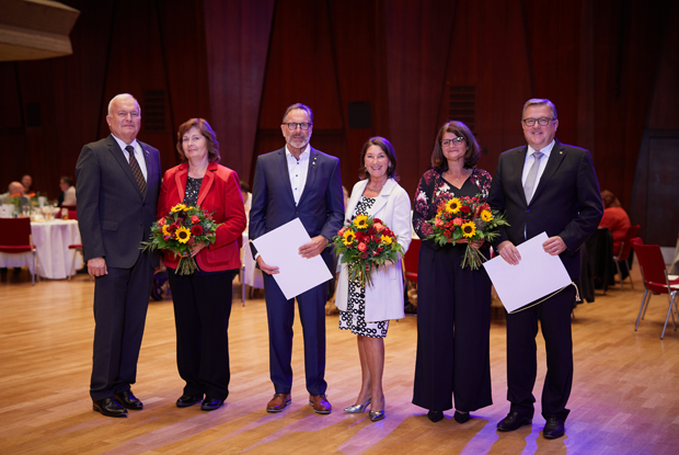 Besondere Verdienste würdigt der LIV mit Goldenen Ehrennadeln: Hans Wittmann,  Dieter Schmid sowie Anton Schiller jeweils mit Ehefrau.