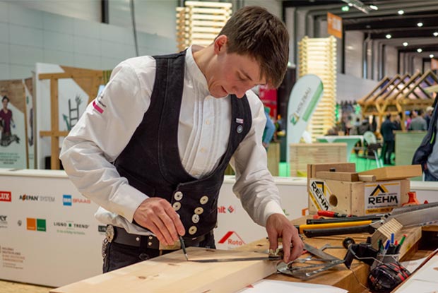Beim Live-Training auf der Messe DACH+HOLZ 2020 bereitete sich Schmidt auf die Europameisterschaft vor. Diese musste leider ausfallen und wird 2022 nachgeholt.