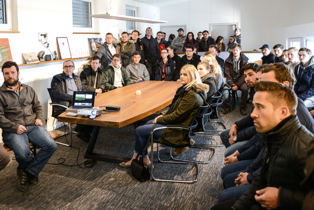 Seit 2014 treffen sich die Holzbaujunioren – potenzielle Betriebsnachfolger/innen bis zu einem Alter von 35 Jahren –, um sich weiterzubilden. Sie bereiten sich so auf ihre spätere Tätigkeit systematisch vor und knüpfen wertvolle Kontakte.