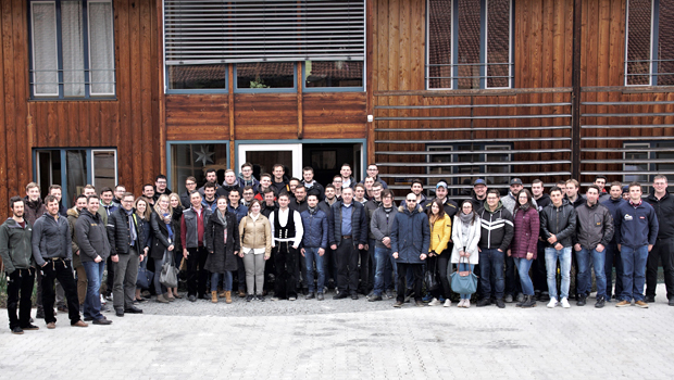 Holzbaujunioren: Das sind die angehenden Inhaber von Holzbaubetrieben. Am 27. März 2019 haben sie die Innungsbetriebe Holzbau Vorholz Hawran GmbH und die Jakob Bscheider Zimmerei GmbH in Oberbayern besichtigt.